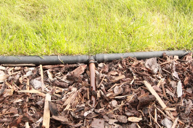Na jeden konektor napojte jen jeden kapkovač a umístěte kapkovač ke kořenům rostliny. Hadičku i kapkovač můžete zahrnou mulčovací kůrou nebo jiným substrátem.